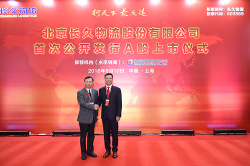 8月10日,北京長久物流股份有限公司在上海證券交易所首次公開發行A股。中國物流與采購聯合會會長何黎明應邀出席長久物流上市儀式并致辭。