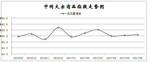 由中國(guó)物流與采購(gòu)聯(lián)合會(huì)調(diào)查、發(fā)布的2017年6月份中國(guó)大宗商品指數(shù)為103.6點(diǎn),升幅雖較5月份縮減0.2個(gè)百分點(diǎn),但已連續(xù)五個(gè)月呈現(xiàn)上漲態(tài)勢(shì)。從主要分項(xiàng)指數(shù)來看,銷售量指數(shù)升幅明顯擴(kuò)大,反映國(guó)內(nèi)需求情況良好;而反映供應(yīng)端的供應(yīng)量指數(shù)和庫(kù)存量指數(shù)升幅均有不同程度的縮減,則表明當(dāng)前國(guó)內(nèi)市場(chǎng)供應(yīng)增速減緩,供應(yīng)壓力有所緩解。數(shù)據(jù)顯示,當(dāng)前國(guó)內(nèi)大宗商品市場(chǎng)穩(wěn)中向好,產(chǎn)銷銜接更趨正常。