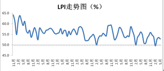物流需求增速放緩,新訂單指數(shù)回落。5月份,業(yè)務(wù)總量指數(shù)為52.8%,比上月回落0.7個(gè)百分點(diǎn);新訂單指數(shù)為53.1%,比上月回落2.1個(gè)百分點(diǎn)。顯示出物流業(yè)需求增速放緩,業(yè)務(wù)規(guī)模縮減,訂單數(shù)量減少,物流運(yùn)行在保持平穩(wěn)運(yùn)行的同時(shí),下行壓力有所積累。