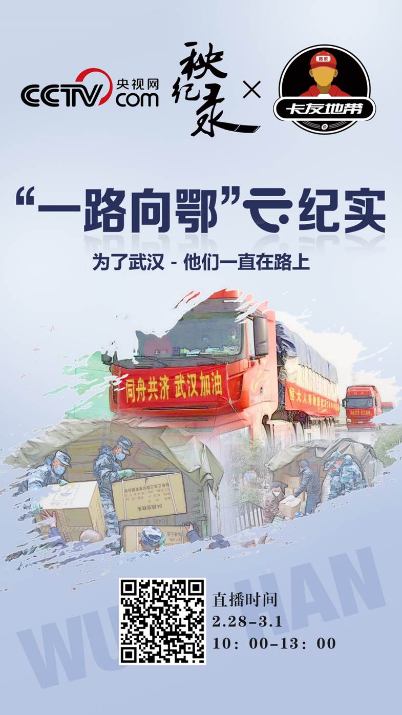 認(rèn)識他們,了解他們,知曉他們的不易,感受他們的堅持與可愛。2月28日-3月1日,每天10:00—13:00,央視網(wǎng)聯(lián)合卡友地帶,現(xiàn)場直播向鄂進(jìn)軍的卡車司機,記錄在疫情之下,卡車司機作為逆行者中不可缺少的一環(huán)運輸過程。