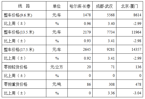 分車型看,各車型指數環比均略微回升。其中,整車指數為989.94點,比上周回升0.06%;零擔重貨指數為989.54點,比上周回升0.06%;零擔輕貨指數為967.91點,與上周基本持平。