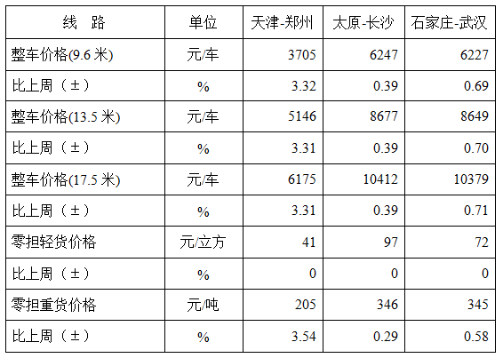 表1 本周部分線路平均價(jià)格及環(huán)比情況對(duì)比