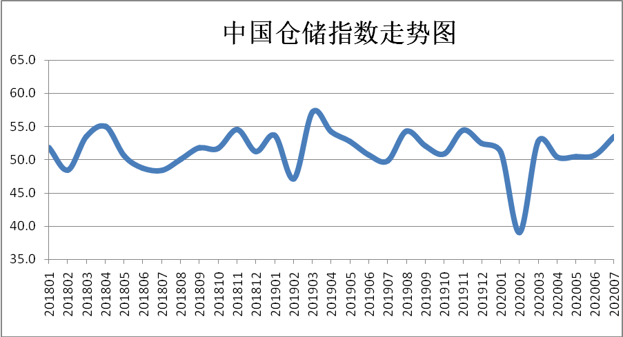 中國物流與采購聯合會和中儲發展股份有限公司聯合調查的中國倉儲指數,2020年7月份為53.5%,較上月上升2.8個百分點,連續五個月保持在榮枯線以上,且本月指數達到八個月以來新高,表明倉儲業務需求增長顯著,行業運行良好。