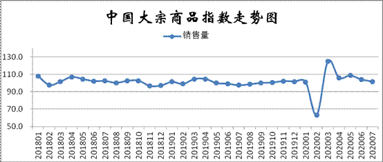 2020年7月份,大宗商品銷售指數(shù)兩連降至107.7%,較上月下跌2.4個百分點。各主要商品中,鋼鐵銷售量繼續(xù)下降,化工銷售量也出現(xiàn)減少態(tài)勢,鐵礦石、煤炭、成品油和汽車銷售量雖繼續(xù)增加,但銷售增速出現(xiàn)不同程度的下滑,有色金屬銷售量在家電等行業(yè)生產(chǎn)加快的提振下,本月出現(xiàn)增速加快的格局。總體來看,下半年全國各地在以習(xí)近平同志為核心的黨中央領(lǐng)導(dǎo)下,統(tǒng)籌推進疫情防控和經(jīng)濟社會發(fā)展,扎實做好“六穩(wěn)”工作,全面落實“六保”任務(wù),我國經(jīng)濟將實現(xiàn)穩(wěn)增長,為拉動大宗商品需求注入強勁動力,市場需求將好于上半年。