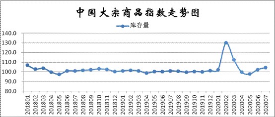 2020年7月份,大宗商品庫存指數(shù)兩連升至104.3%,較上月上升2.0個百分點,顯示商品庫存繼續(xù)累積,庫存壓力進一步加大。各主要商品庫存均呈現(xiàn)繼續(xù)增加的態(tài)勢,且增速較上月均有所加大。