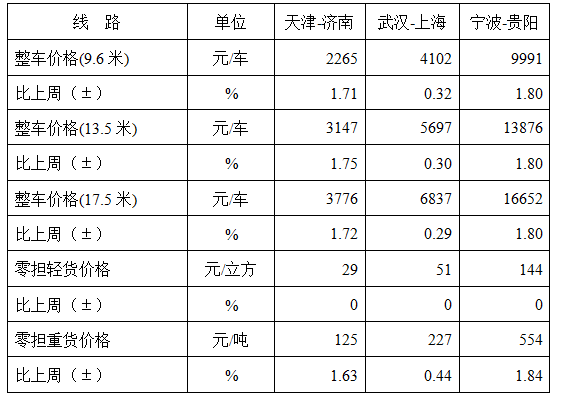 表1 本周部分線路平均價(jià)格及環(huán)比情況對(duì)比