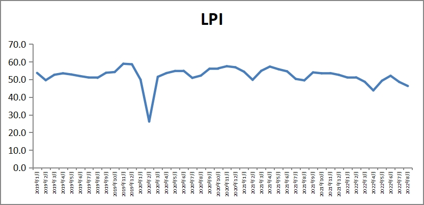 中國物流與采購聯合會發布的2022年8月份中國物流業景氣指數為46.3%,環比回落2.3個百分點。分項指數中業務總量指數和新訂單指數回落較為明顯,反映出5月份以來社會物流需求復蘇回升存在一定的波動性和不確定性。從數據走勢看,物流供給能力基本回歸常態,但營收、盈利、資金等分項指數反復波動,反映企業微觀盈利和活力仍然沒有恢復正常。