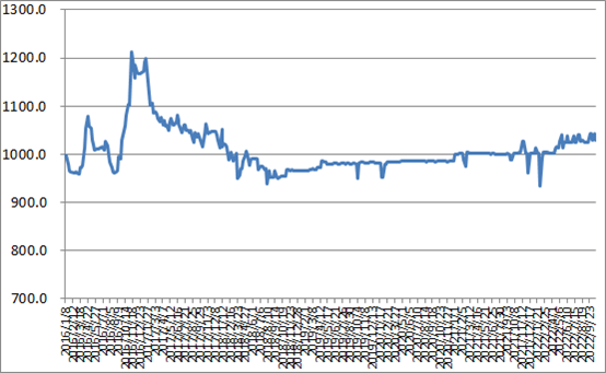 圖1 2016-2022年各周中國(guó)公路物流運(yùn)價(jià)指數(shù)