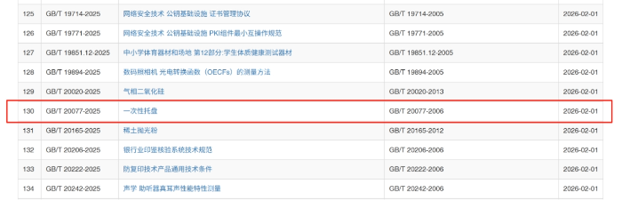 《一次性托盤》給出了一次性托盤的分類,規定了要求、檢驗規則、標志、包裝、運輸和貯存,描述了對應的試驗方法,適用于一次性托盤的設計、生產、檢測、使用和管理。該標準代替GB/T 20077-2006,將于2026年2月1日起實施。