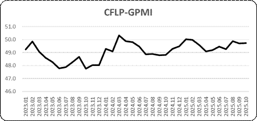 中國物流與采購聯合會發布,2025年10月份全球制造業PMI為49.7%,與上月持平,連續8個月運行在49%-50%的區間內。1-10月,全球制造業PMI均值為49.6%,較去年同期上升0.3個百分點,但仍低于2019年同期水平。分區域看,亞洲制造業PMI和非洲制造業PMI較上月小幅下降,均在50%以上;歐洲制造業PMI較上月小幅上升,在50%以下;美洲制造業PMI較上月微幅下降,在49%以下。