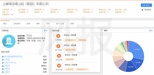在海量的工商、稅務(wù)、涉訴和事件的基礎(chǔ)上,風報系統(tǒng)通過縝密分析,結(jié)合大數(shù)據(jù)技術(shù),第一時間告知企業(yè)的經(jīng)營狀況,將關(guān)鍵的商業(yè)信息傳播給更多企業(yè)用戶,增強企業(yè)間的信任度,并有效提高合作效率。