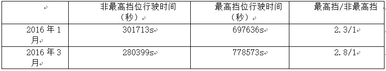 3. 雖然平均速度快,但最高擋行駛時間占比低,經濟性不高;
