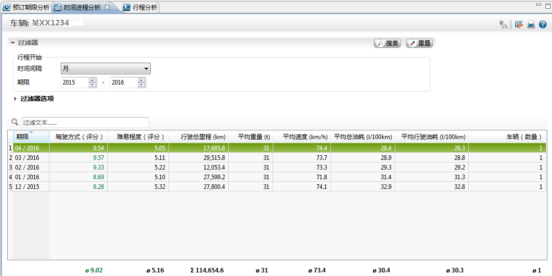 可以看出,在車隊平均重量、平均速度基本保持不變的情況下,車隊4臺車平均駕駛得分穩步上升,從8.7分提升至穩定在9.5分;車隊平均油耗逐月下降,從接近32L/100km,下降至27.5L/100km,平均油耗下降4.5L,降幅達13.7%。