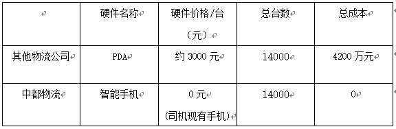 傳統(tǒng)的對運輸車輛在途位置的管控采用GPS技術(shù)實現(xiàn),但其具有成本高、信息共享難度大、故障維護(hù)周期長等難點,該項目成果的應(yīng)用為車輛定位管控提供了全新模式的參考,從成本上分析運輸車輛都安裝固定式車載GPS,每臺服務(wù)費為每年720元.使用智能定位硬件+在途管控APP系統(tǒng)定位運輸車只需一次性安裝智能定位硬件,每臺硬件價格較低僅幾十元,在費用環(huán)節(jié)每年每臺車可減少700元左右,司機使用自有的智能手機,移動數(shù)據(jù)流量每月大約10M(價值3元),較高的實現(xiàn)了降低物流成本的改善目標(biāo)。