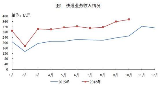 10月份,全行業業務收入完成483.5億元,同比增長38.4%;業務總量完成695.5億元,同比增長48.4%。