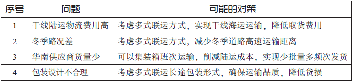 傳統國產零部件運輸主要依靠集裝箱海運和內陸干線公路運輸兩種模式。其中集裝箱海運,大連地區集裝箱線路主要為原材料和大宗物資轉運線路,加之工廠建設初期貨量少,汽車零部件往華東運輸的集裝箱費用偏高。而內陸干線公路運輸,受到東北冬季季節氣候影響,內陸干線道路條件差、雨雪擁堵嚴重,無法滿足工廠生產件運輸納期短、交貨時間精度要求高的需要。