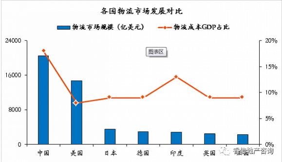 國(guó)內(nèi)物流市場(chǎng)規(guī)模早在2012年就超越美國(guó)位居世界第一(2015年達(dá)到2萬(wàn)億美元,超過美國(guó)1.5萬(wàn)億美元),但從物流成本及基礎(chǔ)設(shè)施建設(shè)來看,整體物流效率偏低,超過70%的現(xiàn)有物流設(shè)施建于1990年前,特別是現(xiàn)代化物流設(shè)施不足1億平米,占比不足20%。