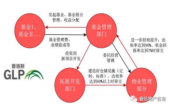 普洛斯打造了由物業(yè)開發(fā)、物業(yè)管理和基金管理形成閉合循環(huán),一方面,通過物業(yè)開發(fā)本身的杠桿、在加上基金的杠桿,層層放大杠桿,實(shí)現(xiàn)有限資金撬動(dòng)更大的管理資產(chǎn),另一方面,通過以房地產(chǎn)基金對(duì)接物流地產(chǎn)開發(fā)的方式,提前兌現(xiàn)物業(yè)開發(fā)利潤(rùn),實(shí)現(xiàn)重資產(chǎn)業(yè)務(wù)輕資產(chǎn)化運(yùn)營(yíng),投資回報(bào)期由原先 10 年縮短至 2-3 年,加快物流地產(chǎn)開發(fā)周轉(zhuǎn)率。