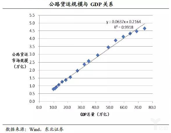 公路貨運面向各行各業(yè),具有顯著的To B屬性,其規(guī)模與宏觀經(jīng)濟高度相關(guān)。據(jù)測算,公路貨運的市場規(guī)模占GDP的比例維持在6%-7%。近三十年來,我國國民經(jīng)濟得到了飛速地發(fā)展,公路貨運市場也隨著經(jīng)濟的發(fā)展而繁榮且野蠻式生長。
