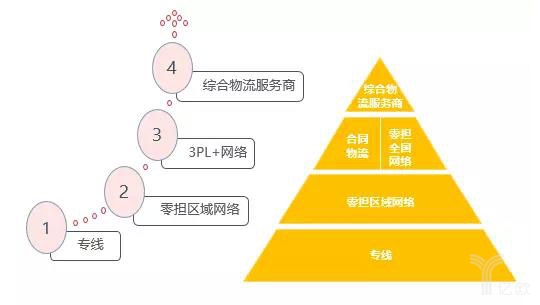 隨著自身業(yè)務的發(fā)展,專線企業(yè)可自發(fā)進行升級改造,逐步成長為零擔區(qū)域網(wǎng)絡(luò)企業(yè)、3PL/零擔全國網(wǎng)絡(luò)企業(yè),最終成為綜合物流服務商。但是這是一條相對漫長的道路,需要充足的人力、物力、財力和時間成本,進行基礎(chǔ)設(shè)施建設(shè)(網(wǎng)點、場站、車隊等建設(shè))和系統(tǒng)升級等等。