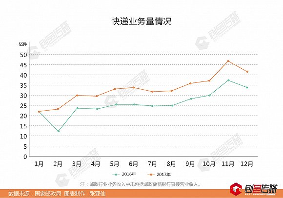 13日,記者從國家郵政局網站獲悉,國家郵政局公布2017年郵政行業運行情況。從公布的數據來看,2017年郵政行業的傳統業務進一步萎縮,而快遞服務大幅增長。