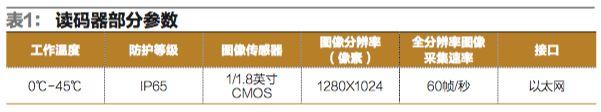 本方案中使用的高性能讀碼器具有識別景深大、視野范圍廣、識別率高等特點。由于采用基于圖像處理技術的優化算法,最大識別率可達到99.9%,且可以同時讀取一維碼和二維碼,支持全方向和多個代碼同時讀取。讀碼器部分參數如表1。