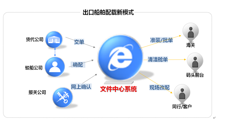 集裝箱進(jìn)出口貨物相關(guān)數(shù)據(jù)由報(bào)關(guān)公司、碼頭、船公司等相關(guān)方在各自系統(tǒng)錄入,數(shù)據(jù)對(duì)碰一致才能正常配船出口或卸船。對(duì)整個(gè)行業(yè)而言,不僅重復(fù)勞動(dòng)多,而且差錯(cuò)率高,一旦一方數(shù)據(jù)出錯(cuò),則會(huì)影響貨物清關(guān)等。