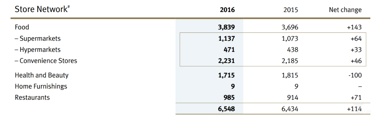 牛奶國際的特點是多元化,不僅布局了多種零售業態,還跨行業跨地域。比如2016年的食品業務收入達到了152億美元(含合資公司),但卻分布在11個市場。這就導致其在單個市場的影響力比較低。所以,雖然牛奶國際的排名達到85位,但其在國內的影響力恐怕并不高,這會降低他們對阿里、騰訊的吸引力。