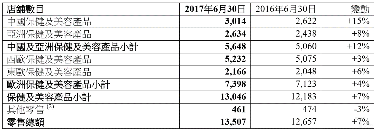 財報顯示,中國市場是屈臣氏近年主要的發力點,去年上半年國內店鋪數量達到3014家,同比增長15%,遙遙領先其他地區。