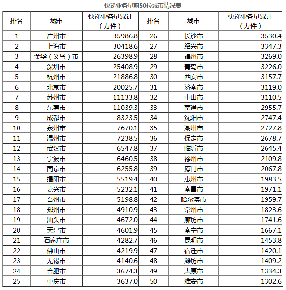 1月,同城、異地、國際/港澳臺快遞業務量分別占全部快遞業務量的22.9%、74.8%和2.3%;業務收入分別占全部快遞收入的14.7%、50.7%和10.5%。與去年同期相比,同城快遞業務量的比重下降2.5個百分點,異地快遞業務量的比重上升2.4個百分點,國際/港澳臺業務量的比重上升0.1個百分點。