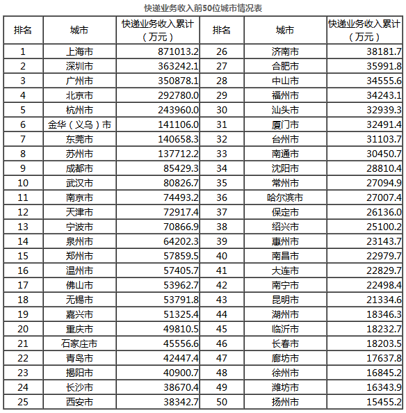 注:郵政行業業務收入中未包括郵政儲蓄銀行直接營業收入。