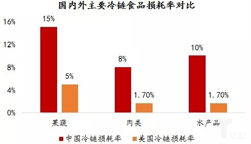 這是由于國內(nèi)普遍缺乏冷鏈意識,消費者對生鮮品是否需要冷鏈保鮮尚沒有嚴格要求,同時我國冷庫分布區(qū)域性不均衡也導致大量產(chǎn)品的冷鏈環(huán)節(jié)出現(xiàn)“斷鏈”現(xiàn)象。在不具備充分冷鏈流通的情況下,果蔬類食品損耗量高達15%(發(fā)達國家的損耗量約為5%),損耗價值超過500億元,造成了巨大的浪費。