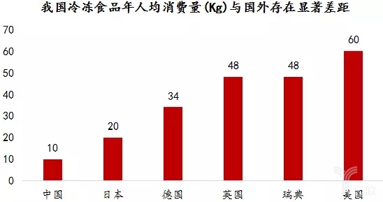 我國冷凍食品年人均消費量僅為10kg,低于日本的20kg,遠遠低于美國的60kg。這是由于中國居民對于冷凍食品依賴性較弱以及冷鏈食品供給端尚未產(chǎn)業(yè)化、規(guī)模化所致。
