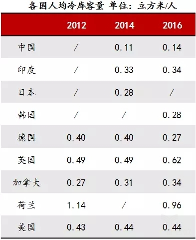 2.我國冷庫人均水平低于海外,內(nèi)陸低于沿海:根據(jù)全球冷鏈聯(lián)盟(GCCA)的統(tǒng)計數(shù)據(jù),2016年全球人均冷庫容量為0.2立方米,印度冷庫容量為1.41億立方米,位列全球第一,第二、三名分別為美國與我國,冷庫容量分別為1.10億立方米和1.07億立方米,但人均冷庫容積不到發(fā)達國家的1/2。