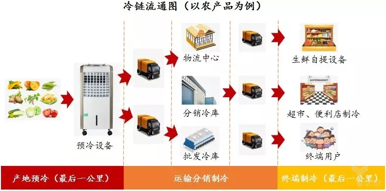 冷鏈物流涵蓋冷凍加工,冷藏貯藏,冷鏈運輸和冷鏈銷售全過程,從制冷設(shè)備制造、冷庫建設(shè),向后延伸至預冷、運輸、儲藏、分銷、配送、消費展示等環(huán)節(jié),涉及冷藏車、冷庫、商業(yè)冷柜等多種設(shè)備,其成本較普通物流要高出40%~60%。