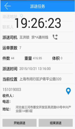 調線后,可給對應司機發送短信,也可以在手持終端接受該調線任務,并通過終端開始派送任務及簽收回單,全程記錄時間及位置信息并回傳系統,對運輸全程做溫度監控,見圖6.