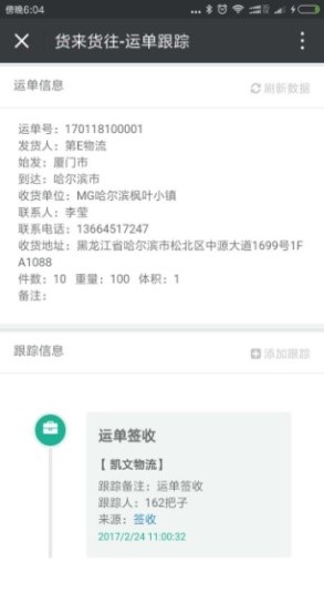 5. 微信app查詢貨物信息、運輸軌跡,提升客戶體驗。