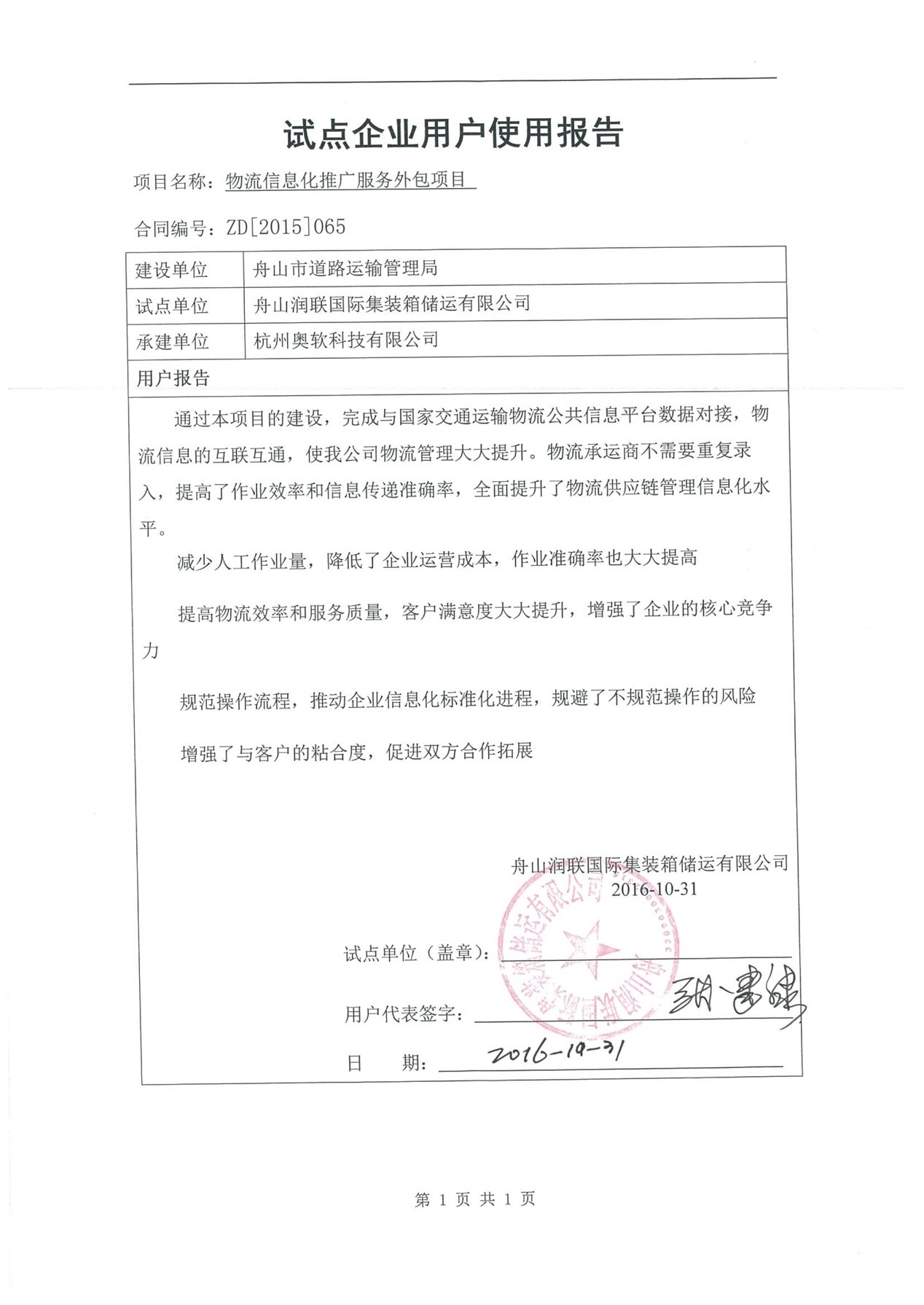 公司本著“質量領先、用戶至上”的服務宗旨,通過規范項目實施管理流程,強調實施一家成功一家的服務理念,先后為國家政府部門、世界500強企業、上市公司、大型的第三方物流企業提供了完整的信息化解決方案及軟件系統部署實施。專心做好物流行業信息化管理的深度應用,幫助用戶創造價值,奧軟人獲得了用戶的一致好評!