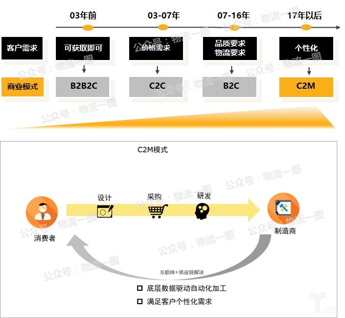 除了線上潛力瓶頸外,新零售很重要的一個(gè)內(nèi)生力量是消費(fèi)者新的需求倒逼商業(yè)模式升級(jí):隨著消費(fèi)升級(jí),客戶(hù)需求越來(lái)越多,要求也越來(lái)越高,從C2C電商滿(mǎn)足消費(fèi)者價(jià)格需求,到B2C電商滿(mǎn)足消費(fèi)者商品及物流品質(zhì)的需求,到現(xiàn)在消費(fèi)者對(duì)商品個(gè)性化的新需求,催生出了C2M商業(yè)模式(消費(fèi)者畫(huà)像推動(dòng)產(chǎn)品研發(fā)和生產(chǎn)):