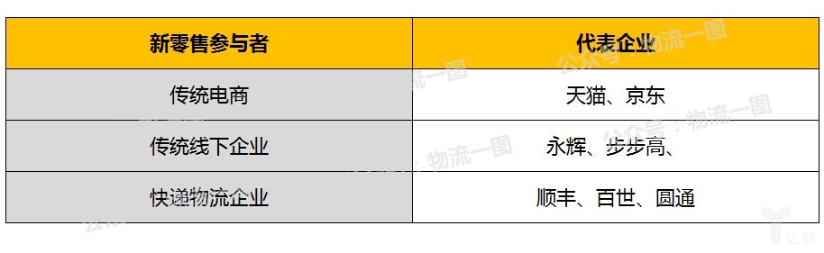 →參與新零售的三類(lèi)企業(yè),即傳統(tǒng)電商、傳統(tǒng)線下和快遞物流企業(yè):