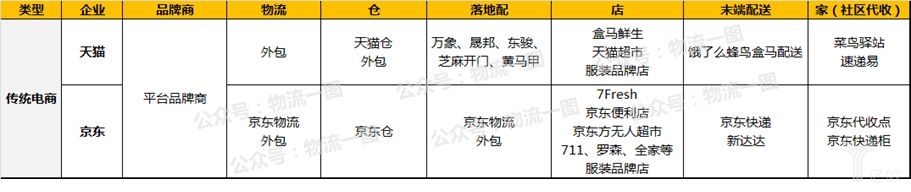 傳統(tǒng)電商企業(yè)資金流充足,各環(huán)節(jié)采用自建或收購(gòu)的方式迅速補(bǔ)全,核心能力是技術(shù)和數(shù)據(jù)優(yōu)勢(shì)、宣傳能力、以及平臺(tái)供應(yīng)商資源。目前主要參與者為天貓和京東。兩者品牌商基本都是入駐平臺(tái)的品牌商,而物流環(huán)節(jié),天貓多采用整合,京東多為自建,另外雙方在門(mén)店到家環(huán)節(jié)的資源搶奪戰(zhàn)也火藥味十足: