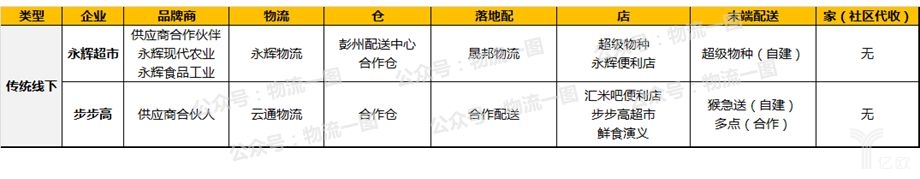 傳統(tǒng)線下企業(yè)優(yōu)勢(shì)是SKU品類(lèi)管理、網(wǎng)絡(luò)終端和強(qiáng)大的供應(yīng)商資源,消費(fèi)者線下體驗(yàn)好,物流方面多為外包或自建,門(mén)店環(huán)節(jié)包括社區(qū)和商場(chǎng)店,如永輝旗下的永輝便利店、以及步步高旗下的匯米吧便利店;商場(chǎng)環(huán)節(jié)方面,永輝推出超級(jí)物種,步步高推出鮮食演義。