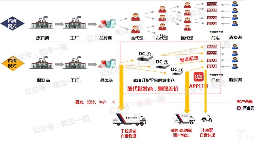 百世倉(cāng)干配的物流能力為百世能“干掉“代理商的前提,去中介化后,可為品牌商和終端零售店均帶來(lái)價(jià)值,還能給百世集團(tuán)其他業(yè)務(wù)帶來(lái)收入: