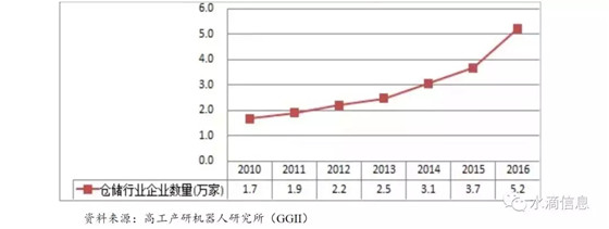 圖:2010-2016 年倉儲(chǔ)行業(yè)企業(yè)數(shù)量
