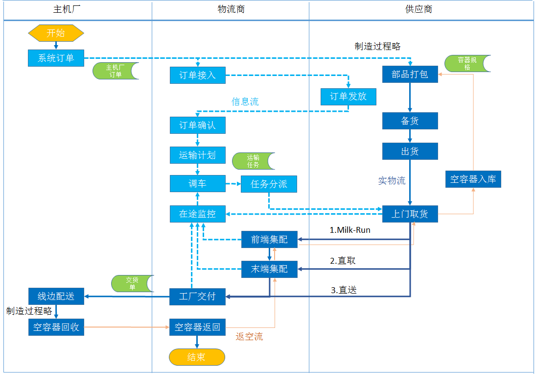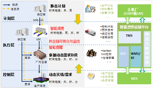 首先,建設(shè)遵循“科學論證、敏捷實施、快速迭代”的總體要求。從汽車供應(yīng)鏈的整體考慮,對整個業(yè)務(wù)流程(如下圖零部件入廠物流的主流程)的關(guān)鍵作業(yè)環(huán)節(jié)進行科學分析、優(yōu)化與創(chuàng)新,并結(jié)合當前行業(yè)標桿及IT技術(shù)發(fā)展趨勢,設(shè)計出適合自身業(yè)務(wù)模式及公司戰(zhàn)略要求的方案。