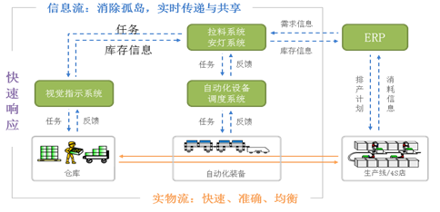 通過對汽車供應(yīng)鏈的主要作業(yè)環(huán)節(jié)進行深入分析,把傳統(tǒng)的價值鏈從生產(chǎn)與流通的角度進行再設(shè)計,將僅在內(nèi)部物流活動有所體現(xiàn)的物流體系價值整合到全汽車供應(yīng)價值鏈中,來提升整條汽車供應(yīng)鏈的核心競爭能力。如,基于本平臺,通過全流程的在線化和數(shù)據(jù)化,打破了整個汽車供應(yīng)鏈的信息不對稱的局面,有效消除了信息孤島,及減緩了相關(guān)延遲,實現(xiàn)了信息共享和作業(yè)協(xié)同,提升了快速響應(yīng)的服務(wù)能力。如下創(chuàng)新模式示意圖: