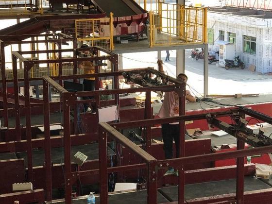 廣東某新建的大型分撥中心,工作人員正為自動化設(shè)備布線