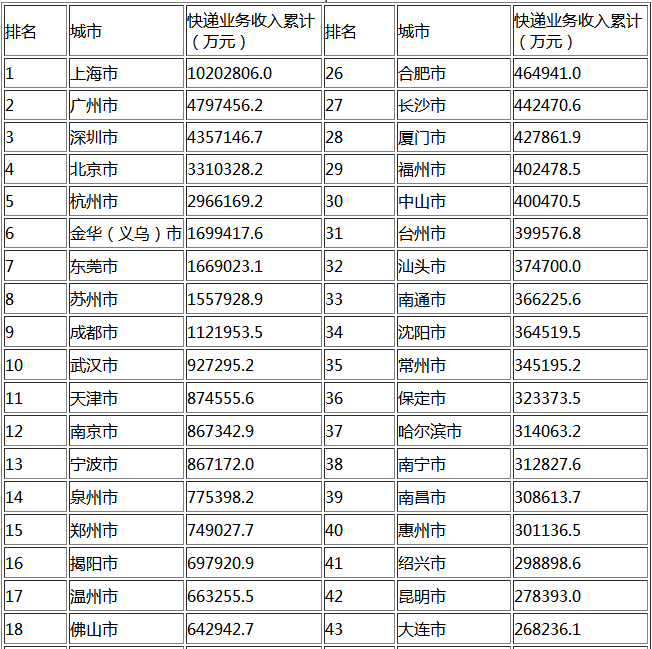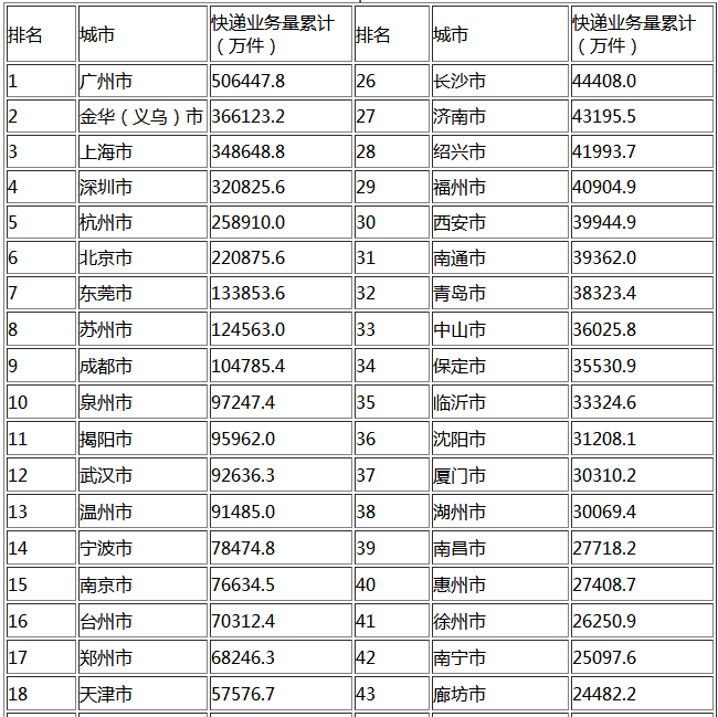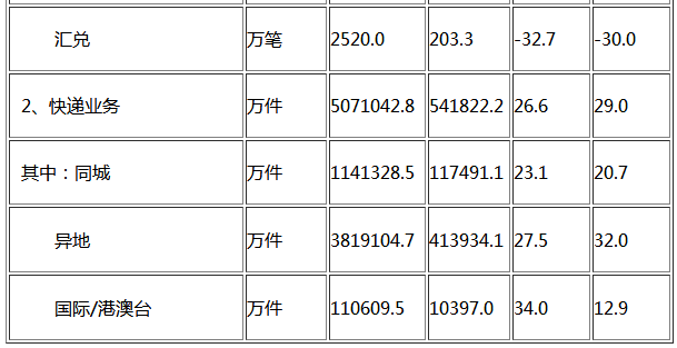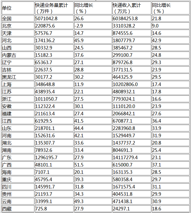 分省快遞服務(wù)企業(yè)業(yè)務(wù)量和業(yè)務(wù)收入情況表