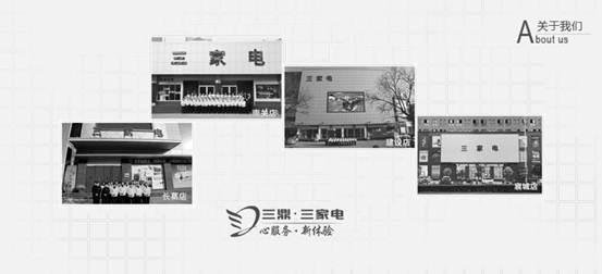 許昌市第三家電責任有限公司是一家以“三產”服務業為主的綜合性企業集團,有員工近兩千名,總資產18億元。 隸屬于許昌三鼎集團。目前公司擁有五家家電賣場:南關店、建設店、長葛店、襄城店、建安店,全品類經營,營業面積1萬余平米,是許昌最大的本土家電零售企業。