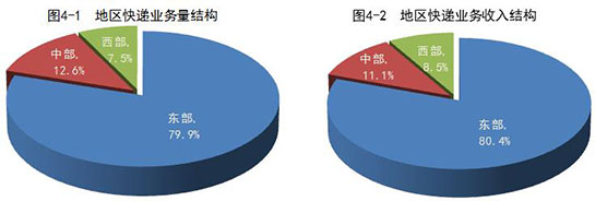 1-9月,東、中、西部地區(qū)快遞業(yè)務(wù)量比重分別為79.9%、12.6%和7.5%,業(yè)務(wù)收入比重分別為80.4%、11.1%和8.5%。與去年同期相比,東部地區(qū)快遞業(yè)務(wù)量比重下降0.1個(gè)百分點(diǎn),快遞業(yè)務(wù)收入比重上升0.4個(gè)百分點(diǎn);中部地區(qū)快遞業(yè)務(wù)量比重上升0.5個(gè)百分點(diǎn),快遞業(yè)務(wù)收入比重下降0.1個(gè)百分點(diǎn);西部地區(qū)快遞業(yè)務(wù)量比重下降0.4個(gè)百分點(diǎn),快遞業(yè)務(wù)收入比重下降0.3個(gè)百分點(diǎn)。